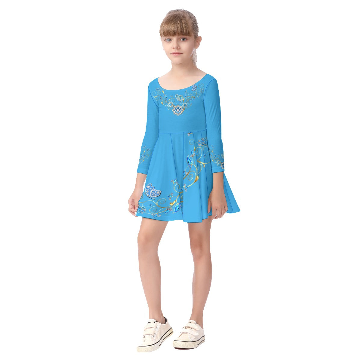 Bright Blue Jewels Kid's Long Sleeve Dress