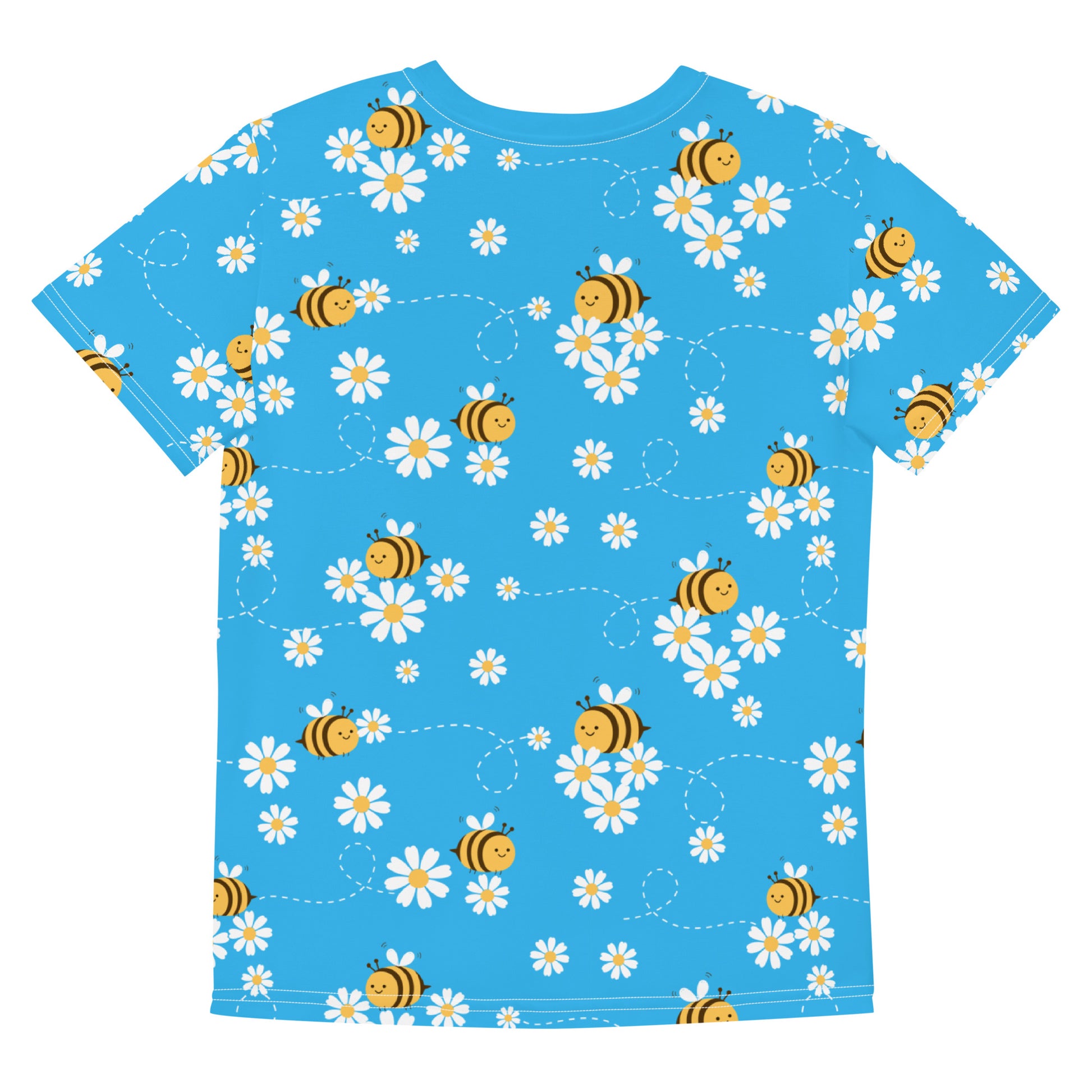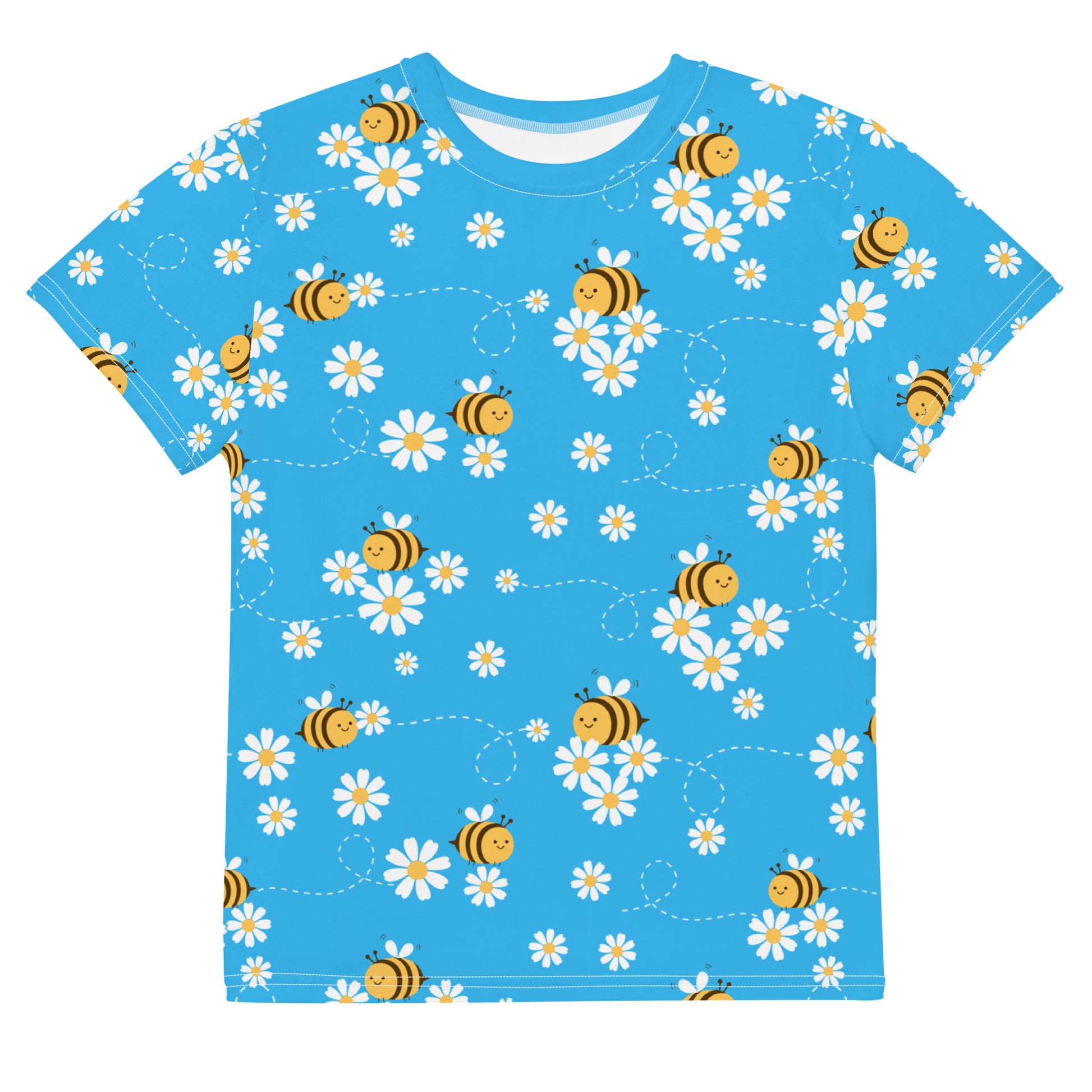 Bees & Flowers Youth crew neck t-shirt Bright Blue