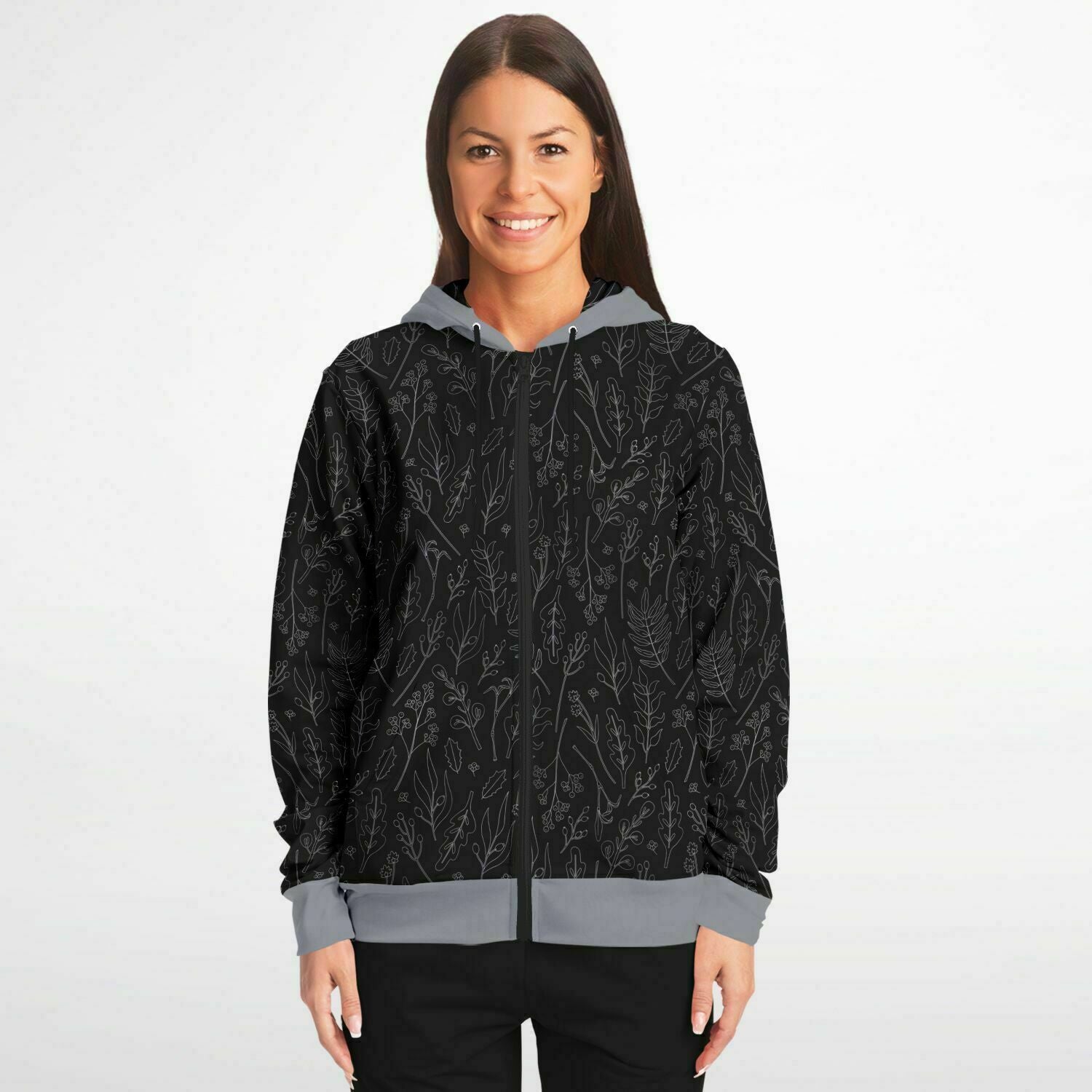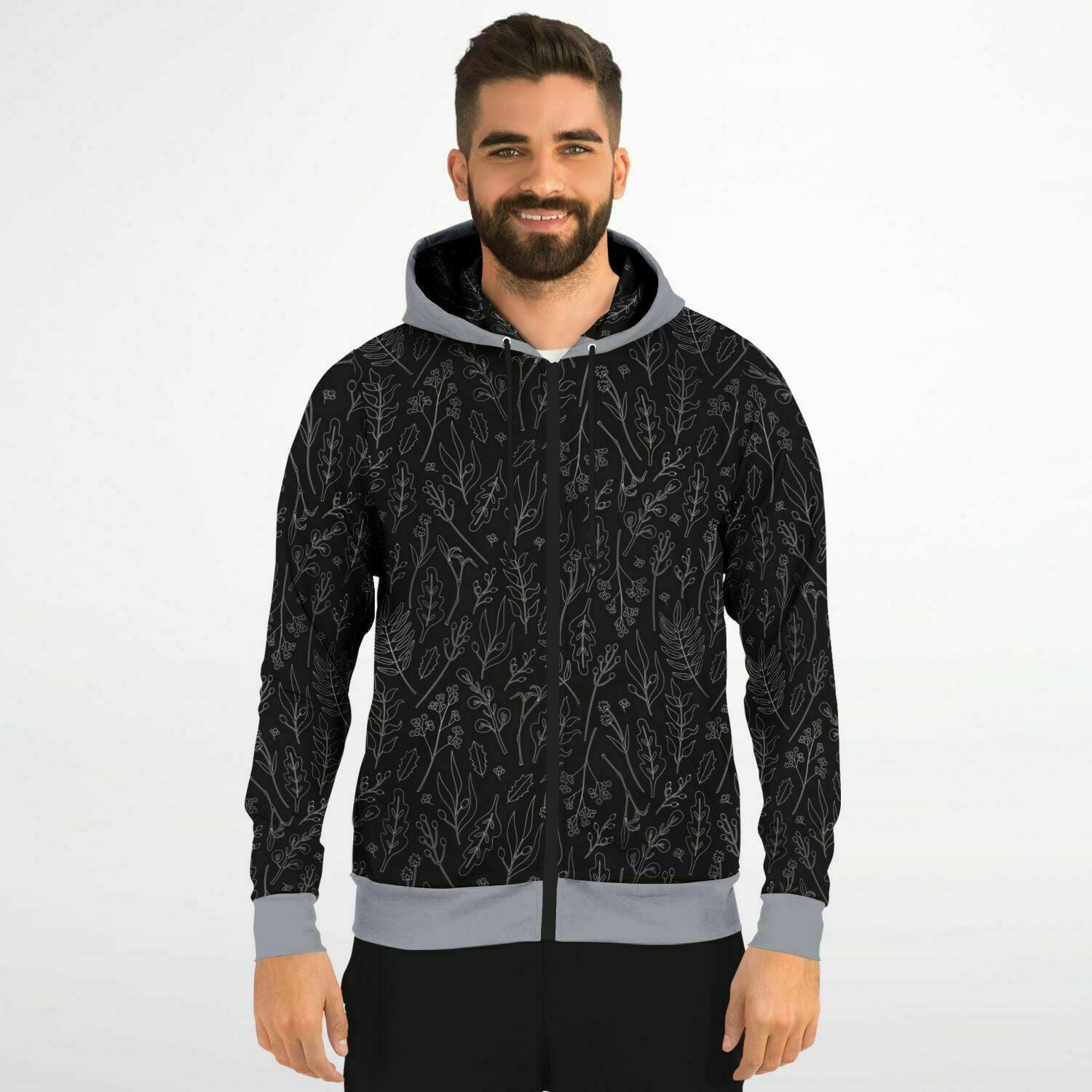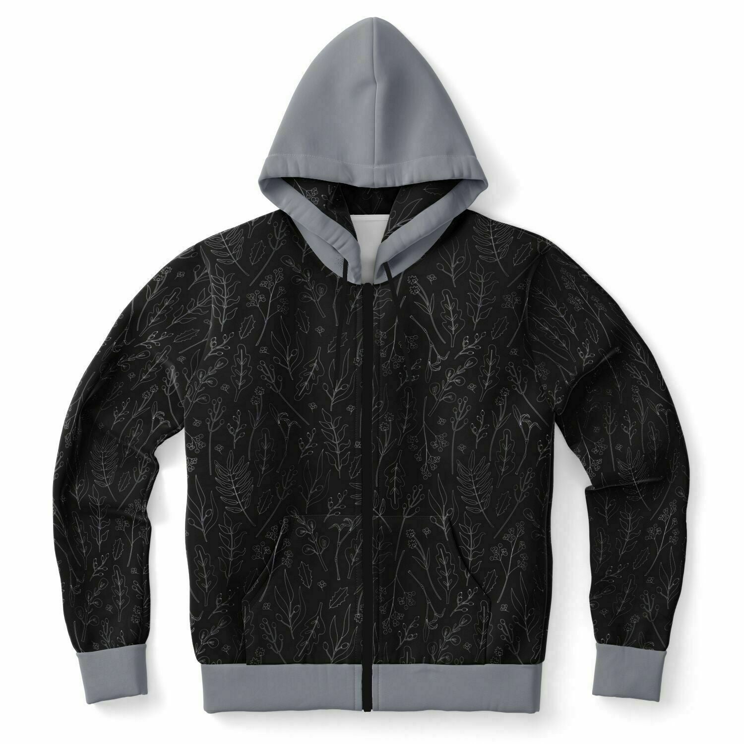 Black-Silver Leaves Zip Hoodie Unisex - silver hood 2