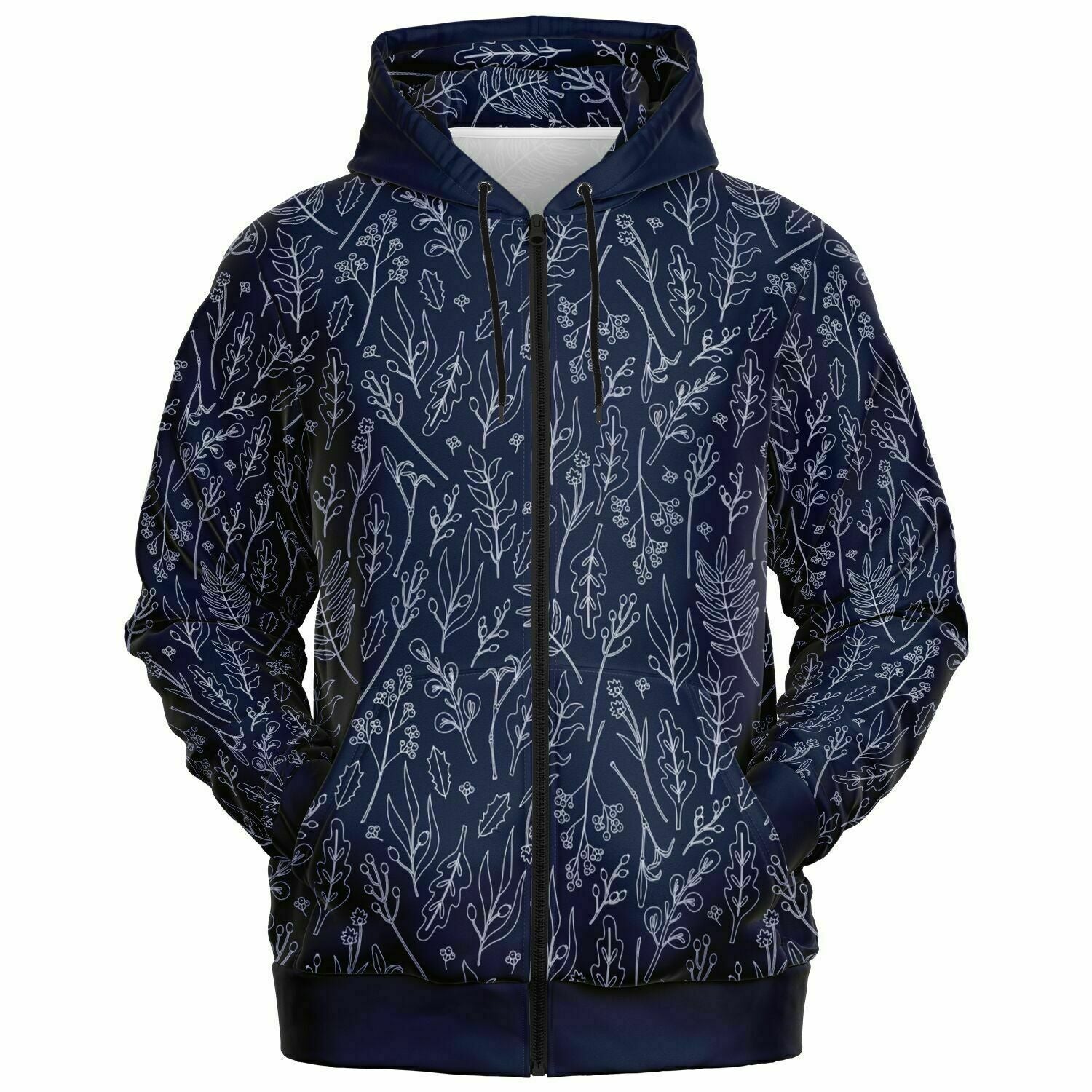 Blue Silver Leaves Zip Hoodie - extra bright
