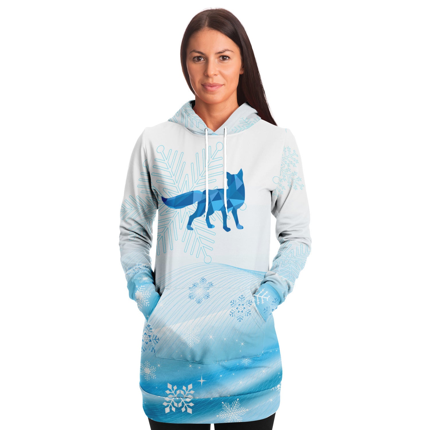 This longline hoodie is made from a soft cotton and polyester faced fabric with a nice brushed fleece on the inside. Fitted with a feminine shaped silhouette for ultimate comfort. Each panel is individually printed, cut and sewn to ensure a flawless graphic with no imperfections.