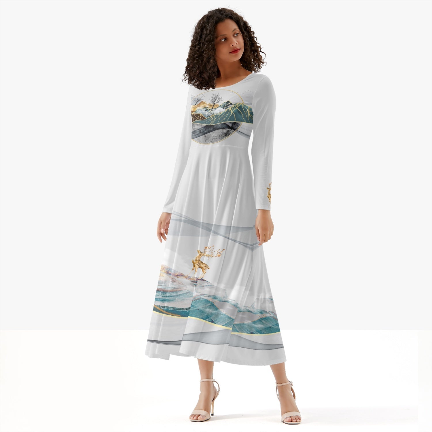 Dreamy Mountains Women's Long-Sleeve One-piece Dress