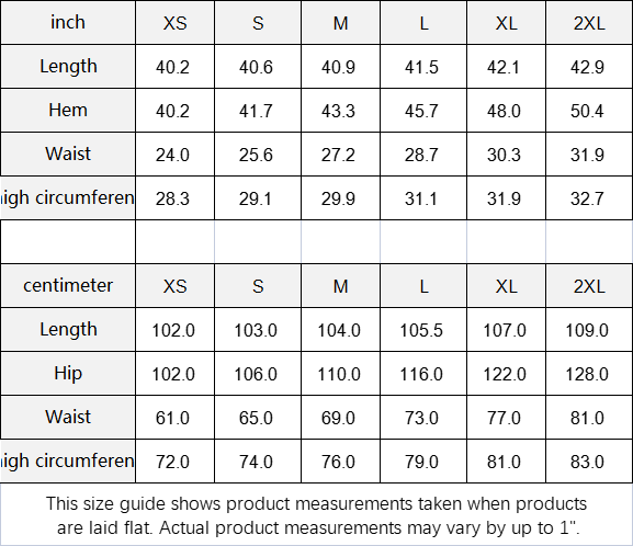 | Waist | 61.0 | 65.0 | 69.0 | 73.0 | 77.0 | 81.0 |
