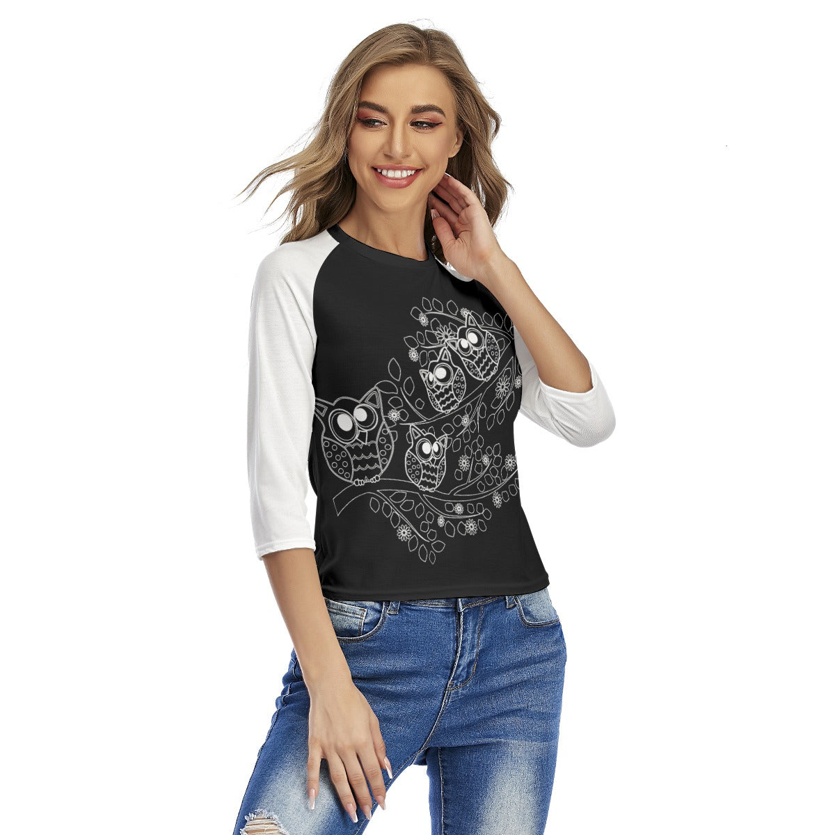 Owl Family Women's Raglan Sleeves T-shirts - black