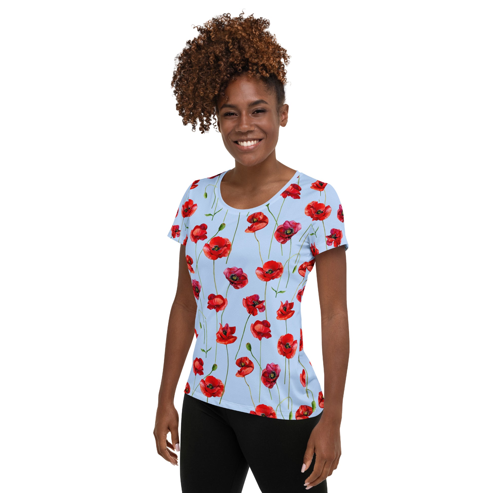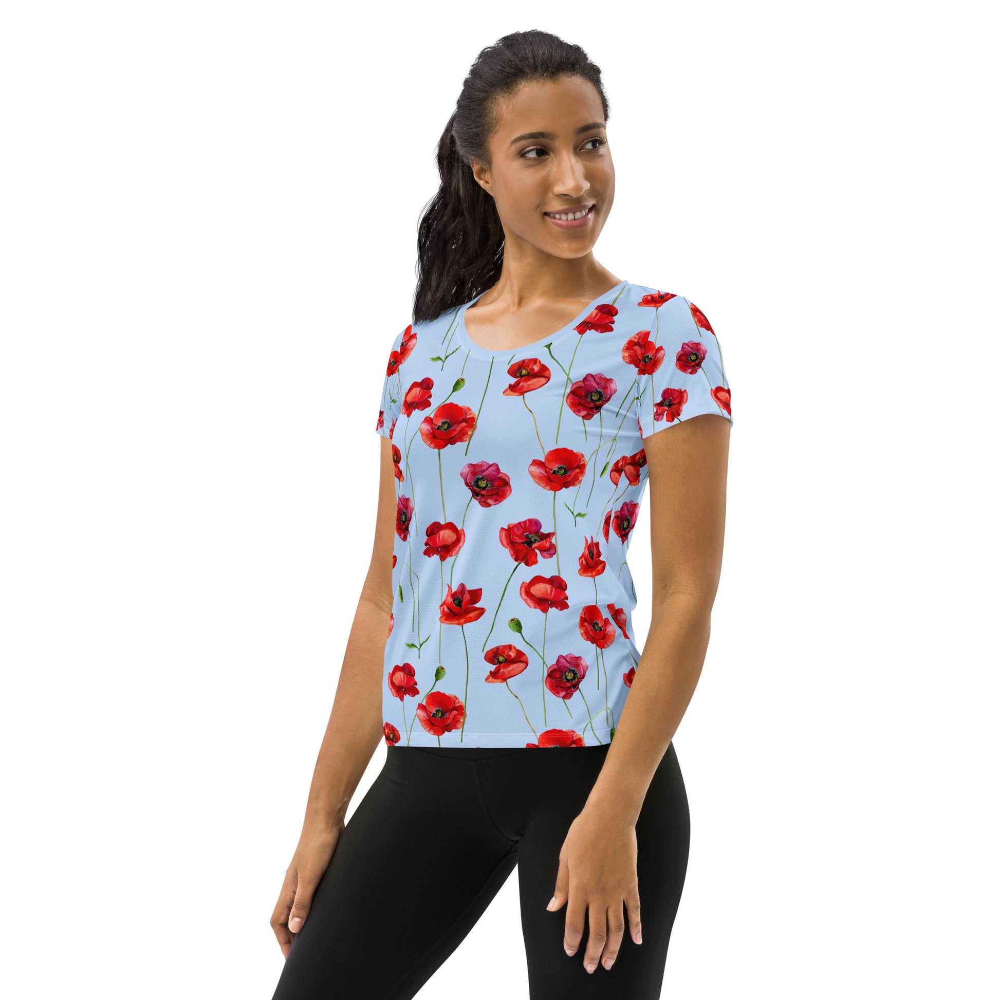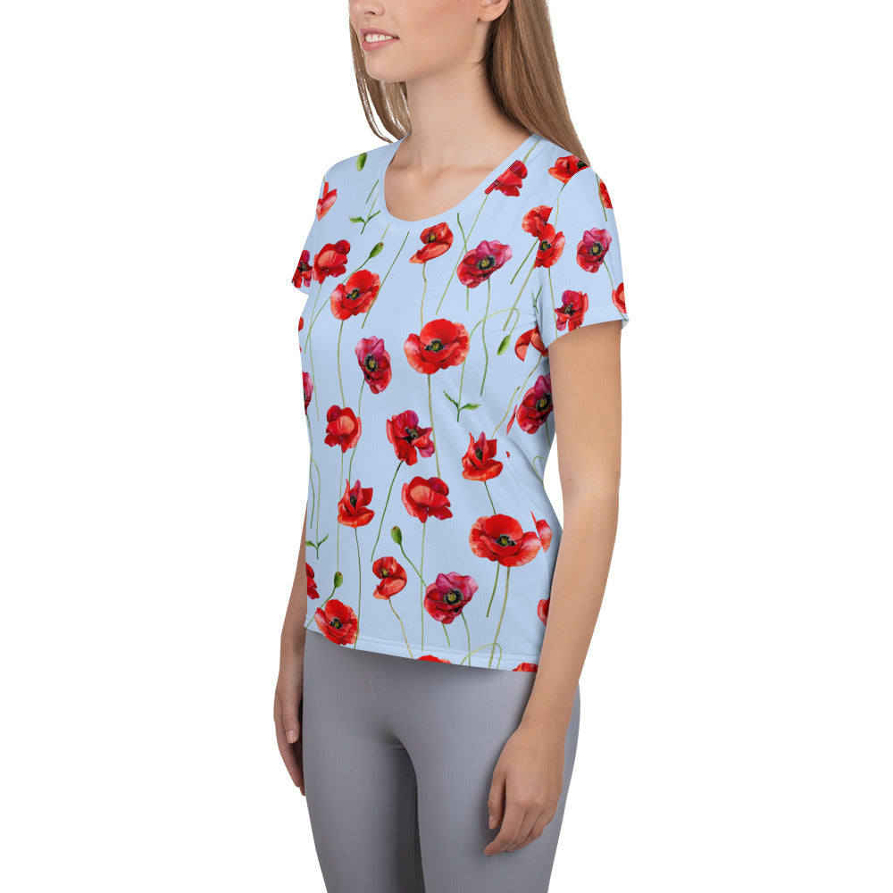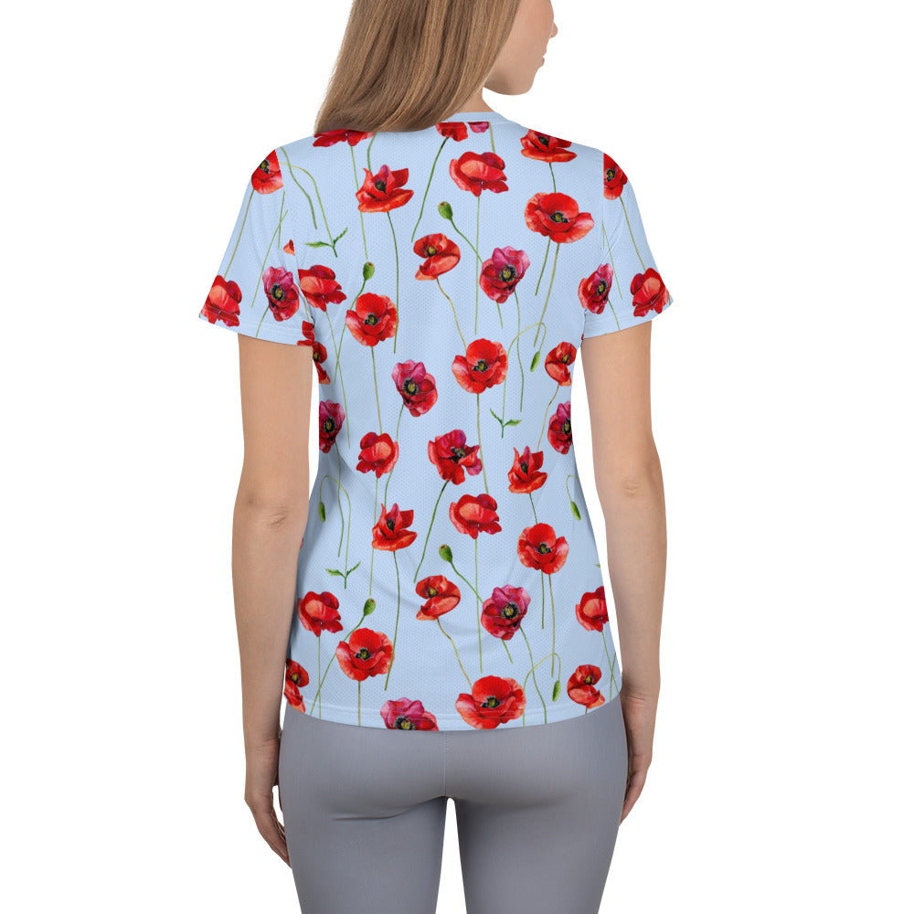 Red Poppies 1 Women's Athletic T-shirt - light blue