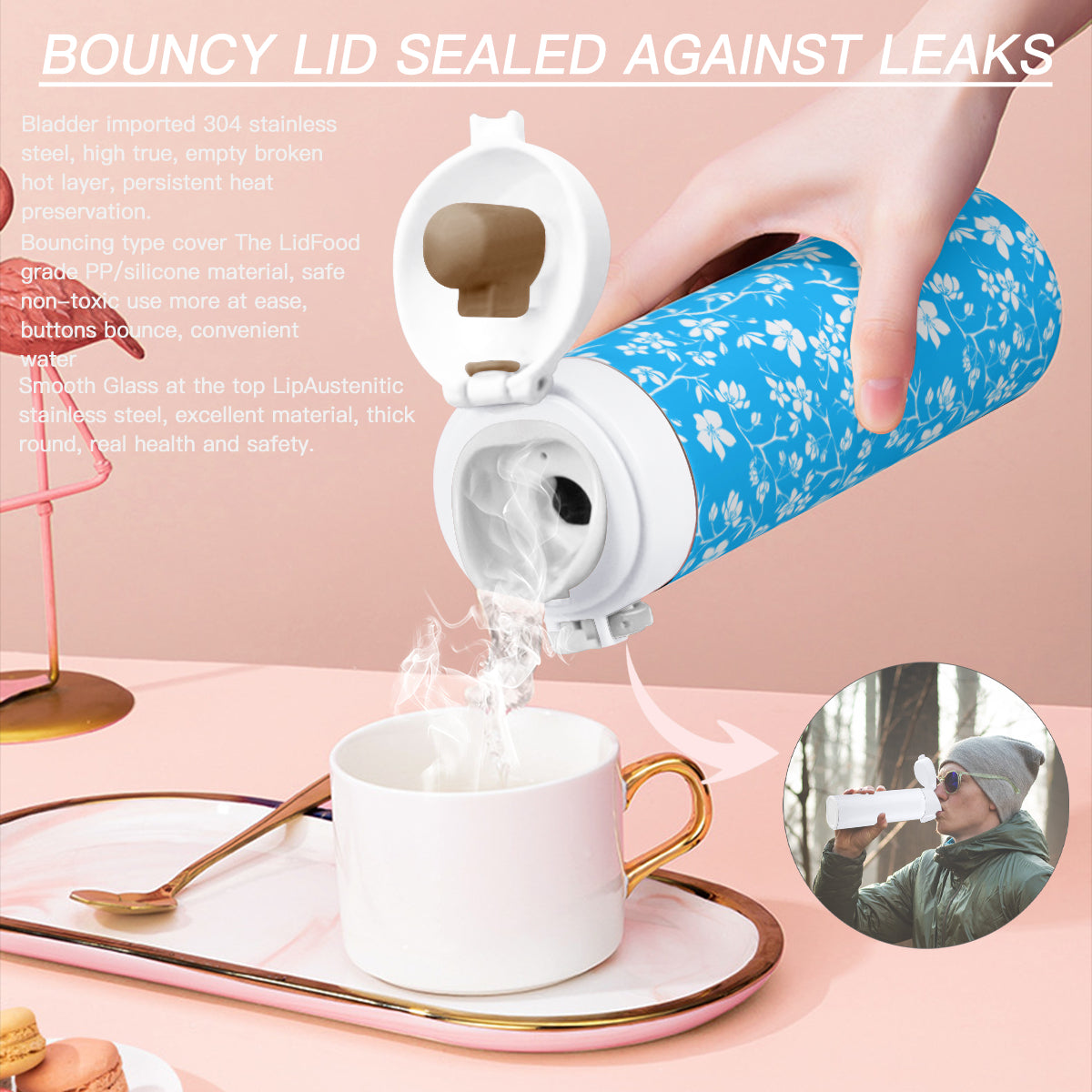 Asian Flowers Travel Tumbler (354ml/12oz) | Stainless Steel 304 - blue