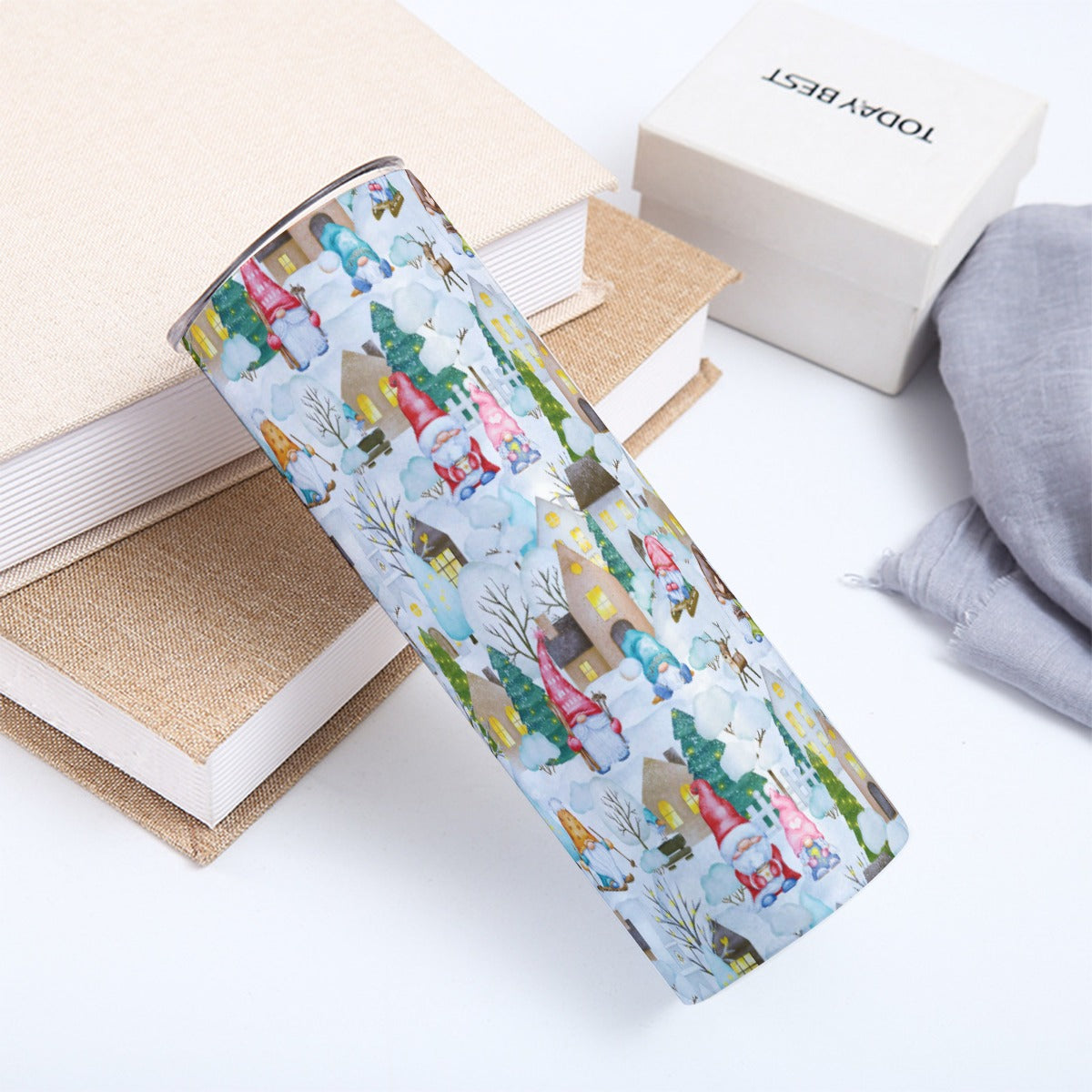 Winter Gnomes Town Skinny Tumbler Stainless Steel with Lids 20OZ